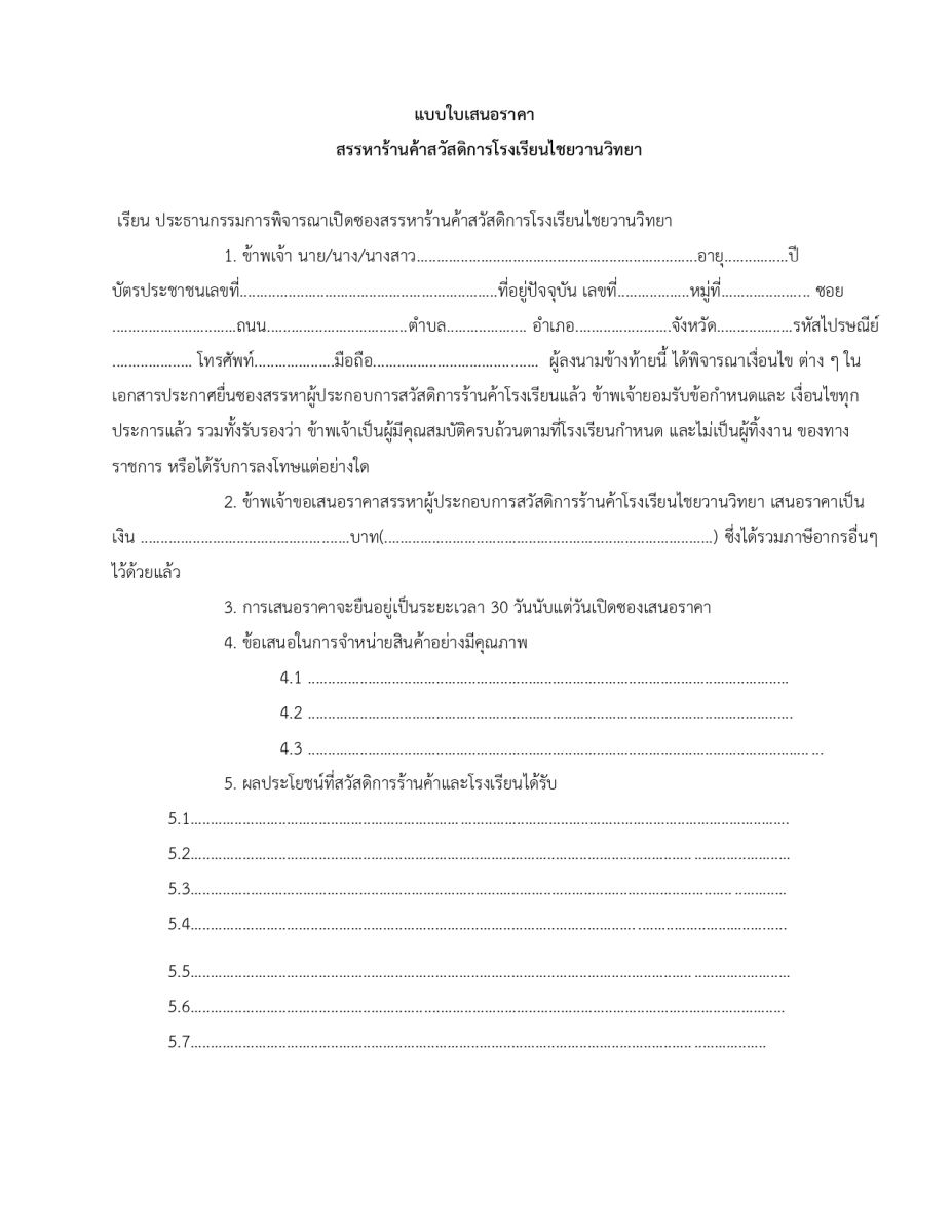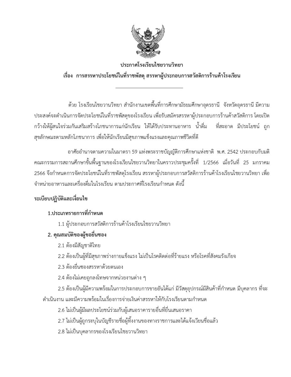 ประกาศโรงเรียนไชยวานวิทยา เรื่อง การสรรหาประโยชน์ในที่ราชพัสดุ สรรหาผู้ประกอบการสวัสดิการร้านค้าโรงเรียน